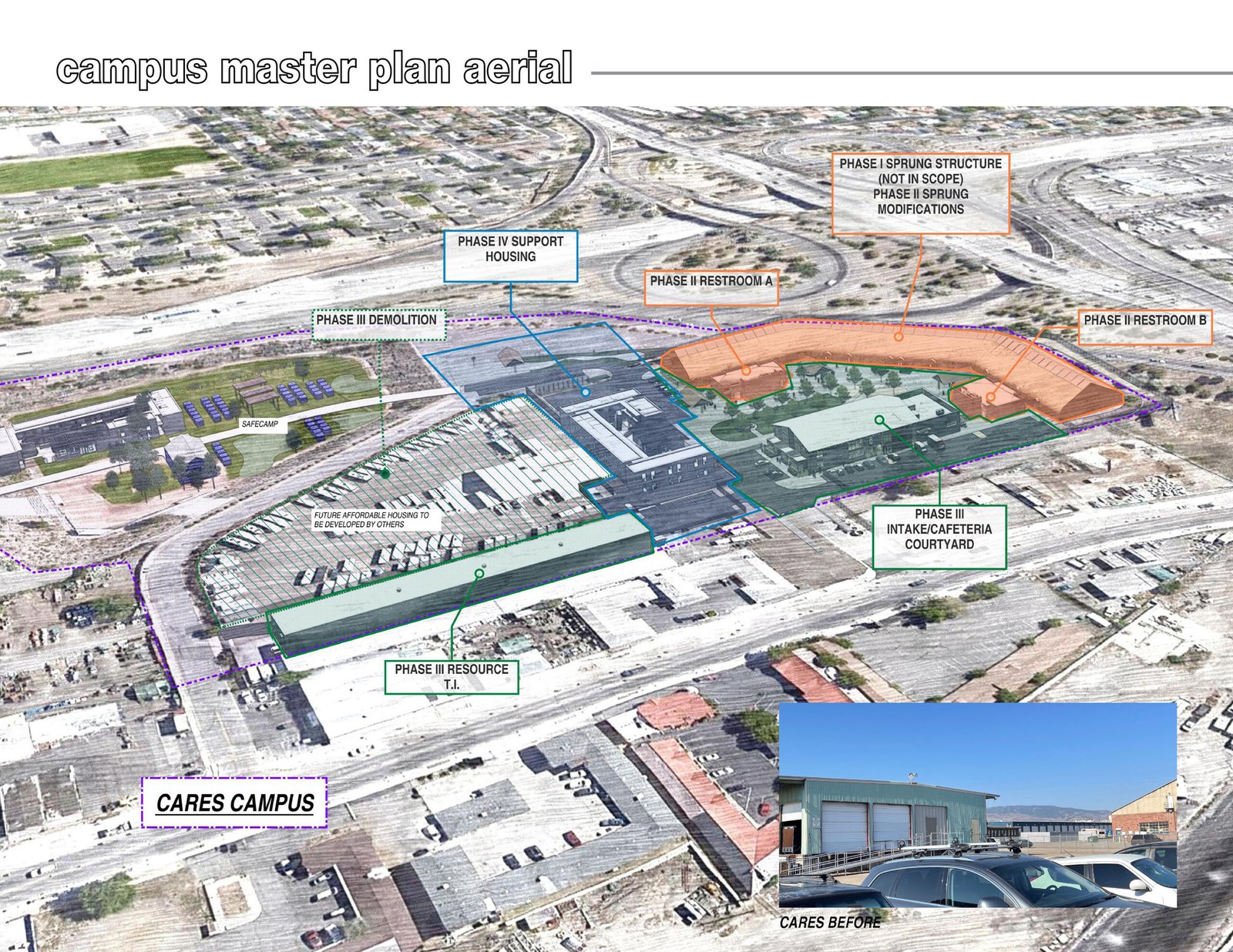 The Nevada Cares Campus reclaims a neglected industrial site and transforms it into a civic landscape for recovery and renewal. What began as a temporary emergency shelter on an asphalt lot has become a permanent, purpose-built campus that brings safety, clarity, and hope to one of Nevada’s most vulnerable populations.