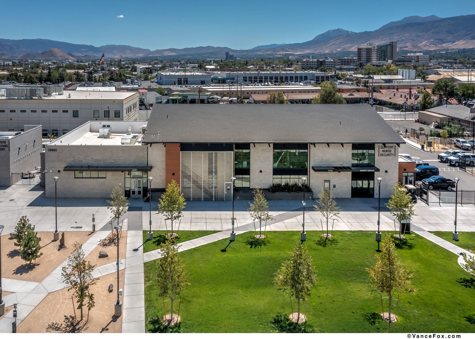 Sustainability at the Nevada Cares Campus is inseparable from its sense of responsibility—environmental, fiscal, and social. Built on a reclaimed industrial site, the project makes strategic use of existing infrastructure and buildings to minimize waste and embodied carbon while stretching limited public funds.