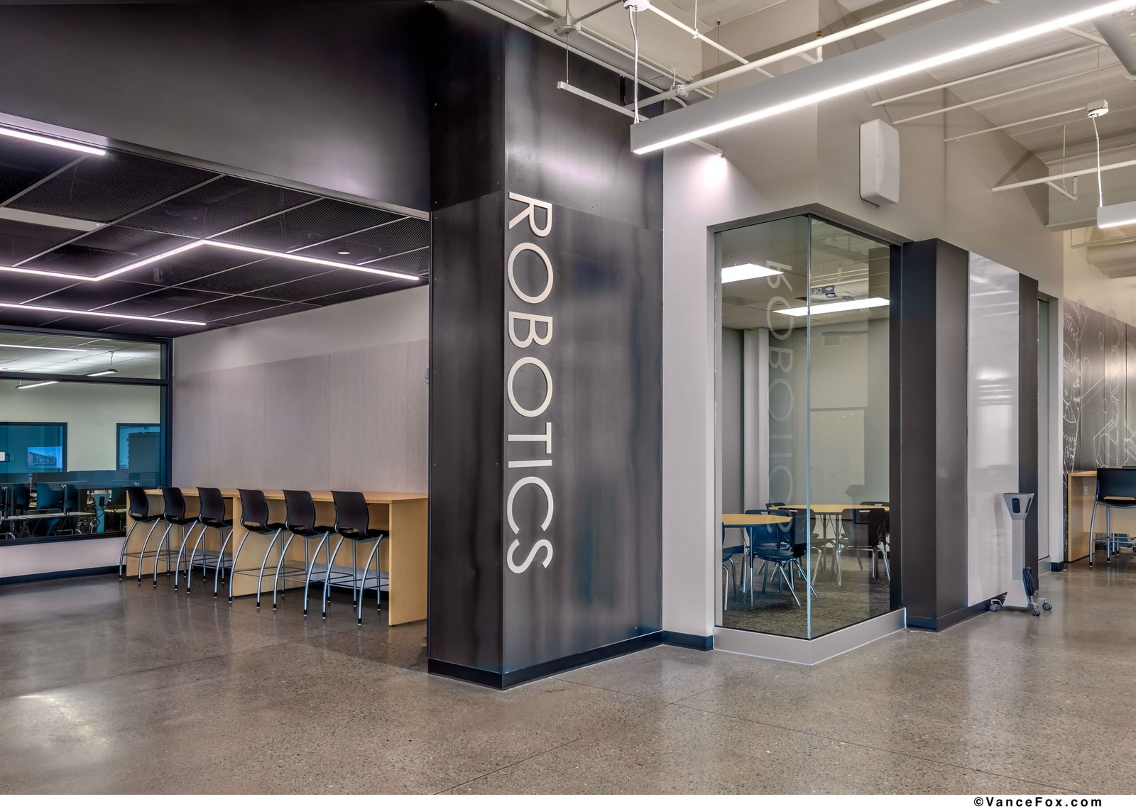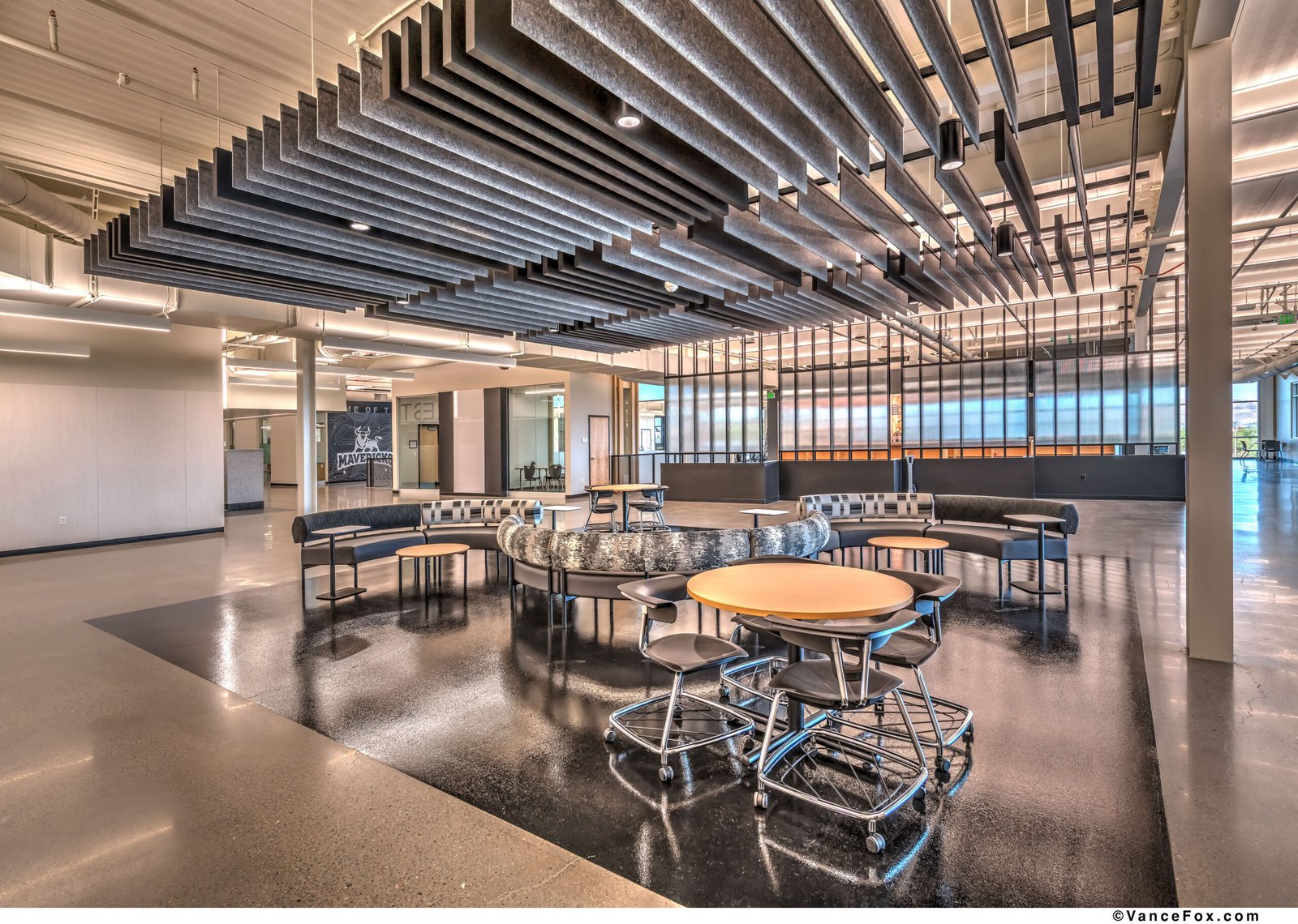 Set against Reno’s foothills, the Debbie Smith Career and Technical Education Academy establishes a new model for learning environments where industry, artistry, and community converge. The project transforms a disjointed mid-century campus into a unified academic village that frames education as both collaboration and civic act. A two-story academic building anchors the site, organizing the campus around a central commons and terraced green. This composition reconciles topography and circulation, stitching new and existing buildings together through plazas, outdoor classrooms, and shaded walkways. The resulting sequence of spaces encourages movement, gathering, and the exchange of ideas — indoors and out. The architectural language is purposeful and direct. Exposed structure, robust materials, and visible systems embody the honesty of craft. The “Pitch Pit,” a monumental stair within the commons, becomes the social heart — a forum for daily interaction, presentations, and shared experience. Daylight and transparency animate interior bridges and labs, revealing the act of making and celebrating curiosity as a collective pursuit. Material continuity binds old and new. Black metal panels, polished concrete, and warm wood accents extend across the campus, aligning durability with identity. The palette echoes the school’s colors — black, white, silver, and gold — and reframes utilitarian forms into school pride expression. Programmatically, the design supports an exceptional range of disciplines: from Nursing and Robotics to Agriculture, Welding, Culinary Arts, and Media Production. Each is expressed architecturally through specialized labs, integrated graphics, and visual openness that encourage cross-disciplinary engagement. The building becomes a living diagram of learning — where structure, systems, and signage together form a curriculum of space. The design’s planning framework reflects an educational philosophy centered on visibility, inclusivity, and shared purpose. Circulation zones double as social corridors, connecting diverse programs and encouraging interdisciplinary discovery. Transparency is used not as a gesture, but as a pedagogical tool — transforming corridors into galleries of process, where students witness one another’s work across disciplines. The building’s modular structural grid and rational organization allow for future adaptation, enabling the facility to evolve alongside emerging technologies and industries. In this way, the architecture becomes both a vessel for learning and a resilient infrastructure for the district’s long-term educational vision. Sustainability is inseparable from strategy. Over half the campus was retained and repurposed, conserving embodied carbon while focusing resources on transformative new construction. The design process enabled iterative collaboration with educators, ensuring that spatial planning, technical performance, and educational vision evolved together. In composition and intent, the Debbie Smith CTE Academy redefines what a public school can be: a place where architecture teaches resilience, where making is visible, and the built environment itself becomes an agent of pride and possibility.