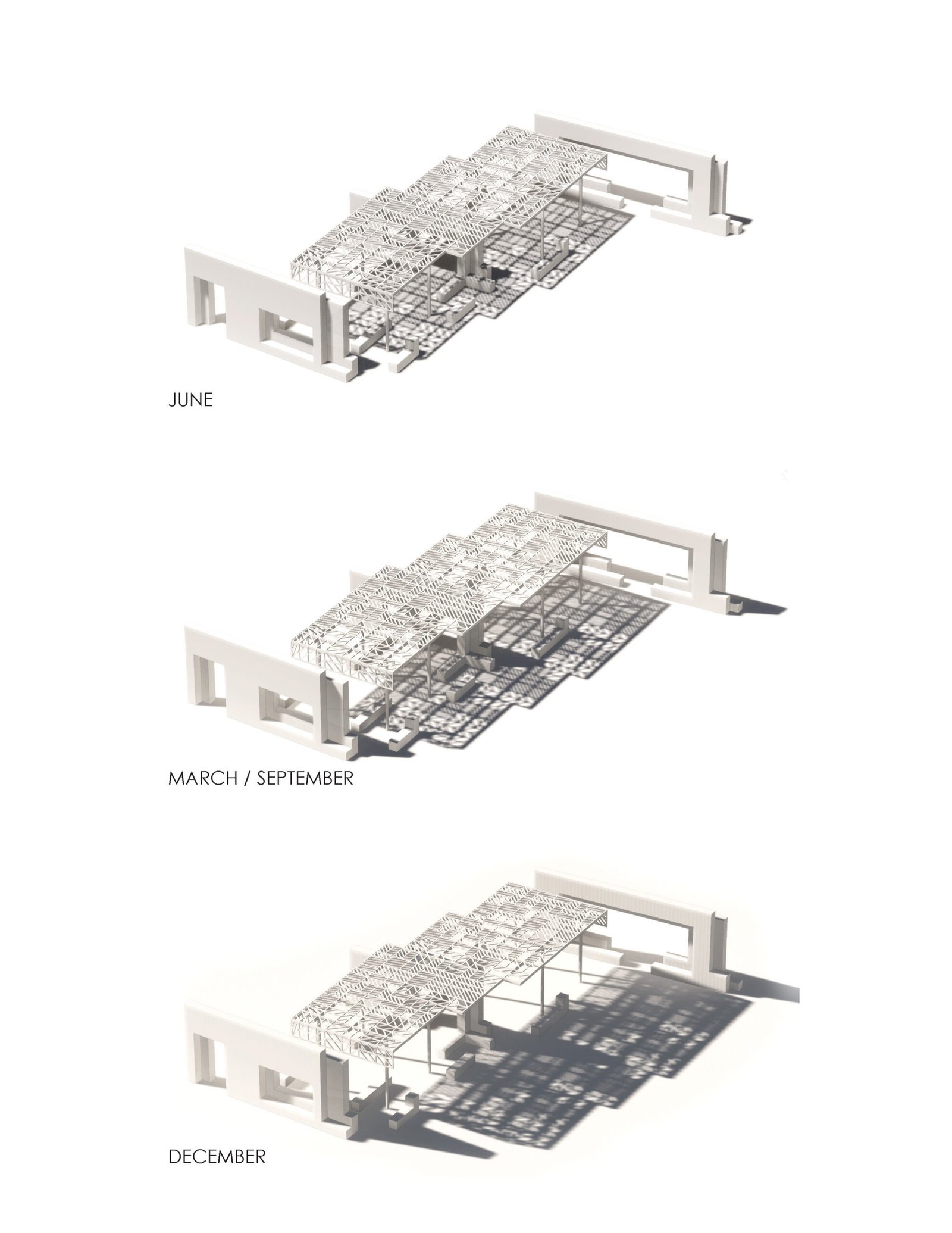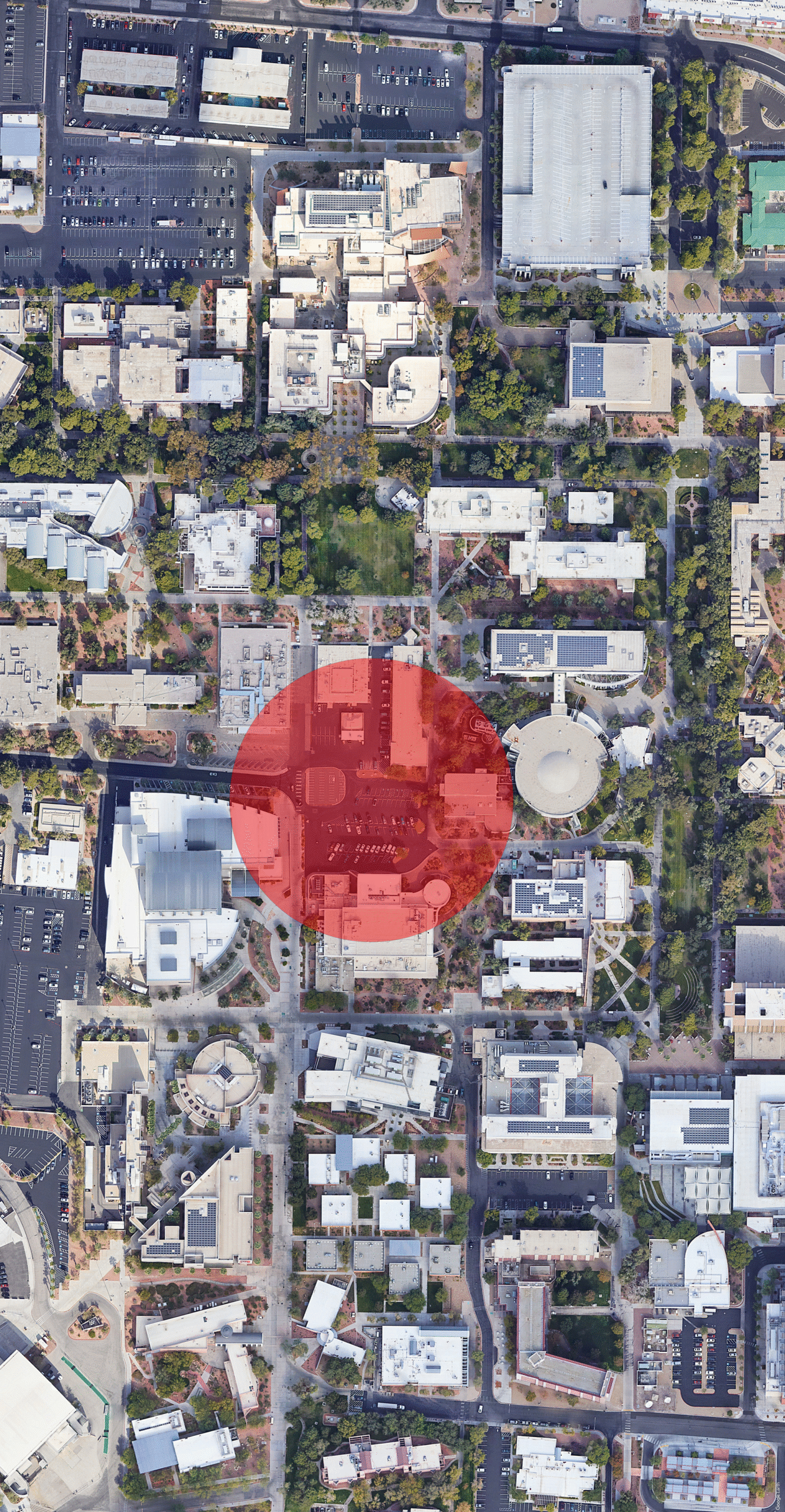 The pavilions incorporate varied materials which refer to both the existing campus buildings and to to the rocky desert in which the University is situated. Patterned metal roof elements partially shield the seating areas below from the harsh sun. The paving in the ground plane establishes a splayed linear geometry, which rotates around the plaza and provides and organizing structure of hard and soft landscape elements.