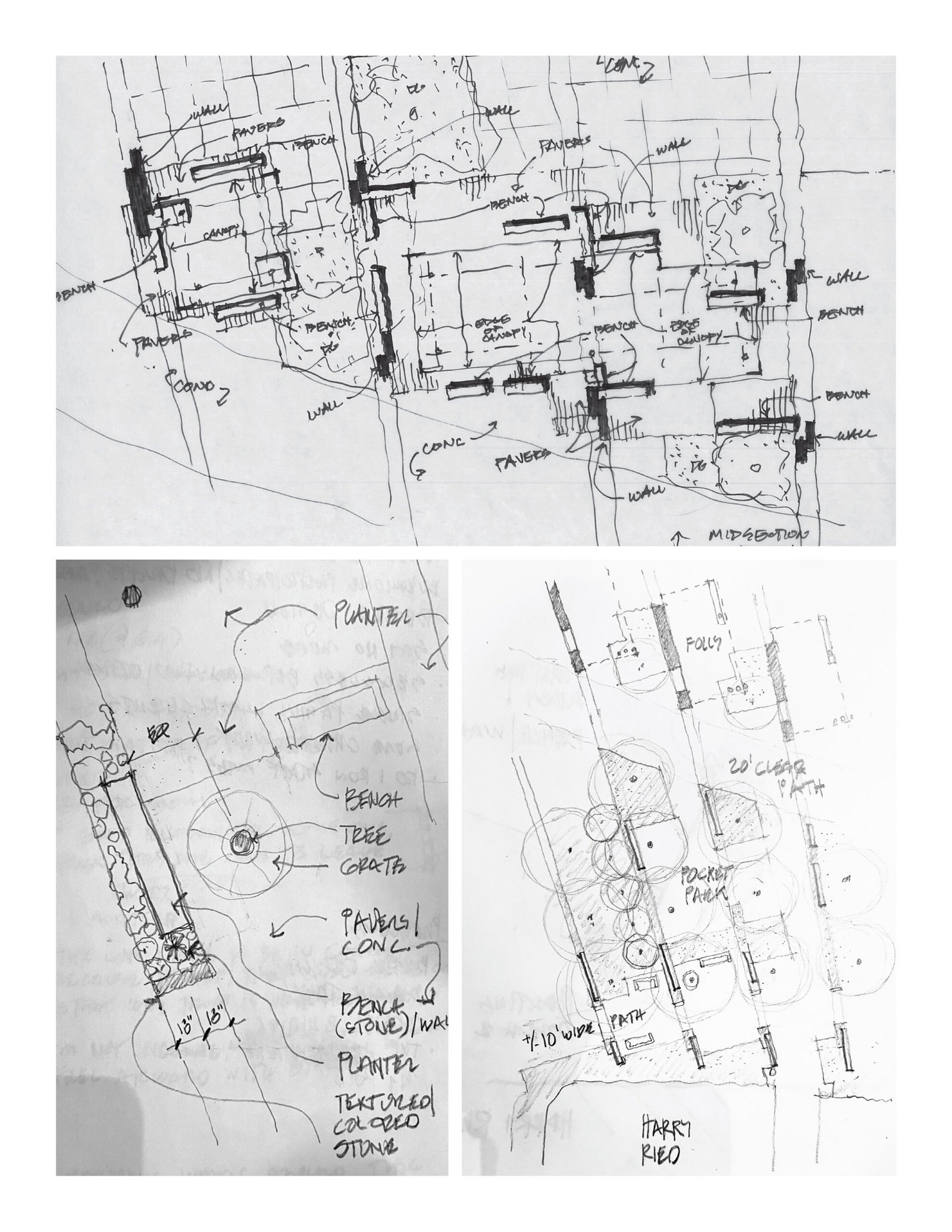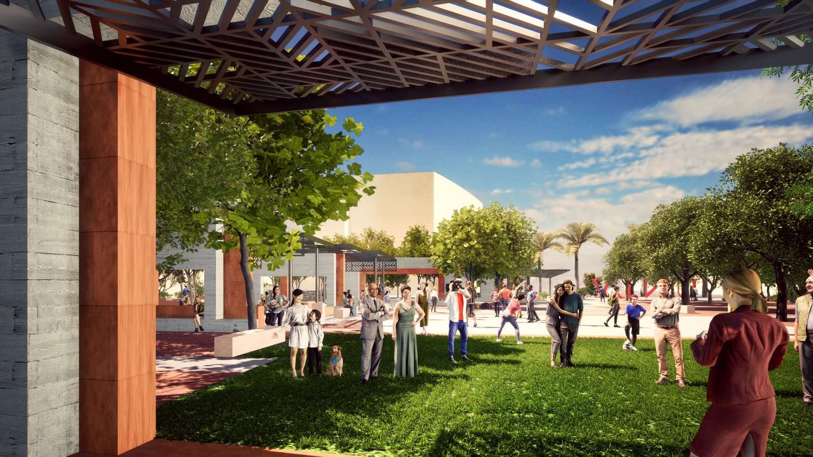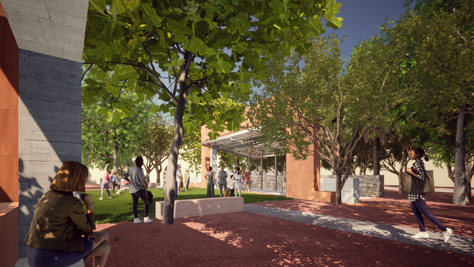 pavilions to sit casually in the shade between classes, read, or meet with a study group; one larger pavilion that can double as an impromptu stage;