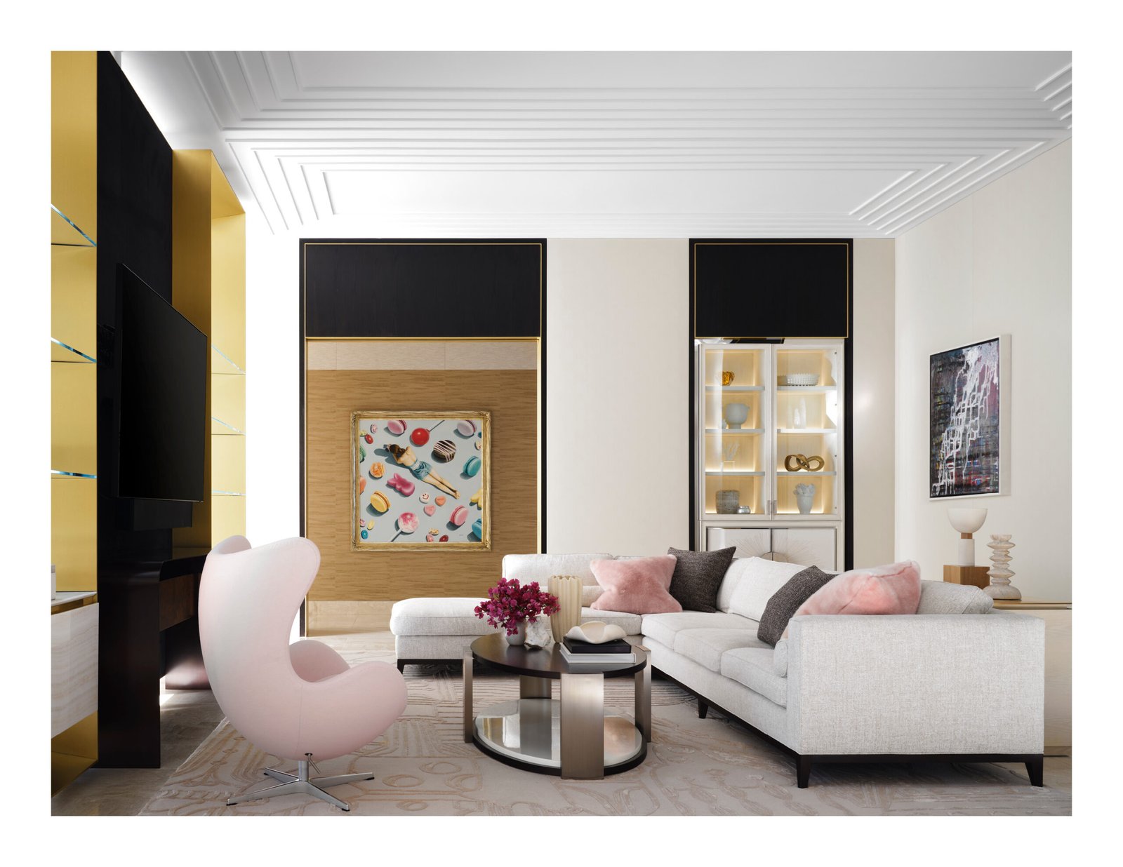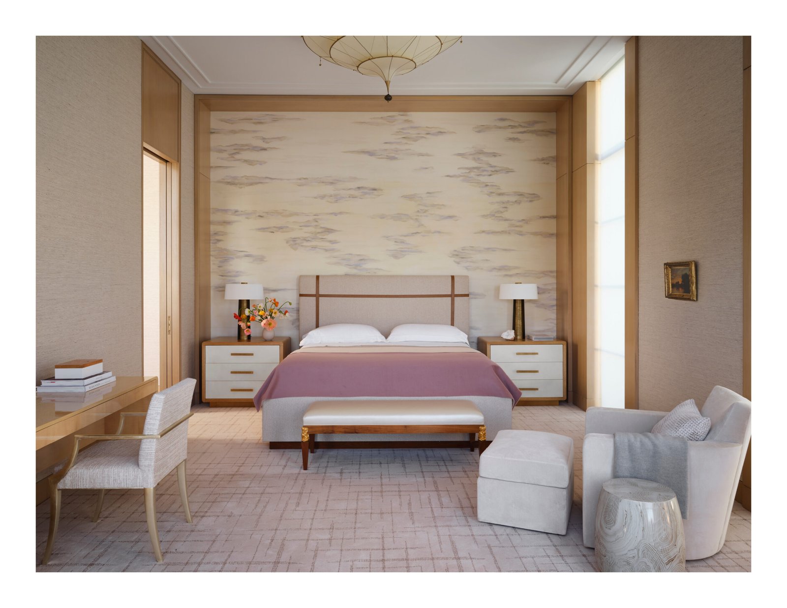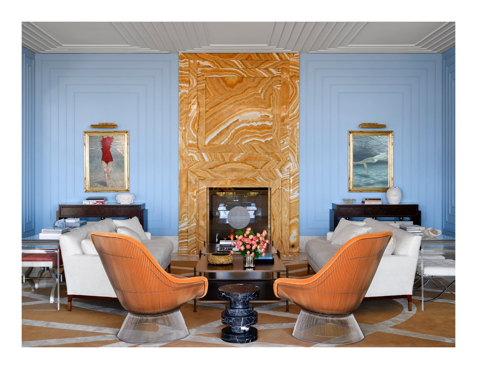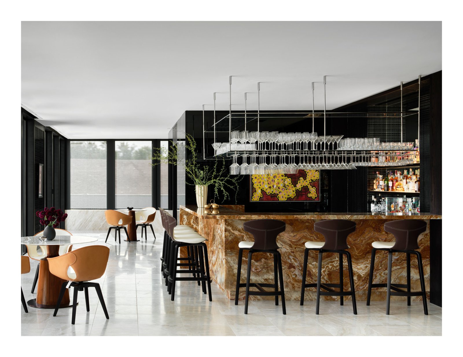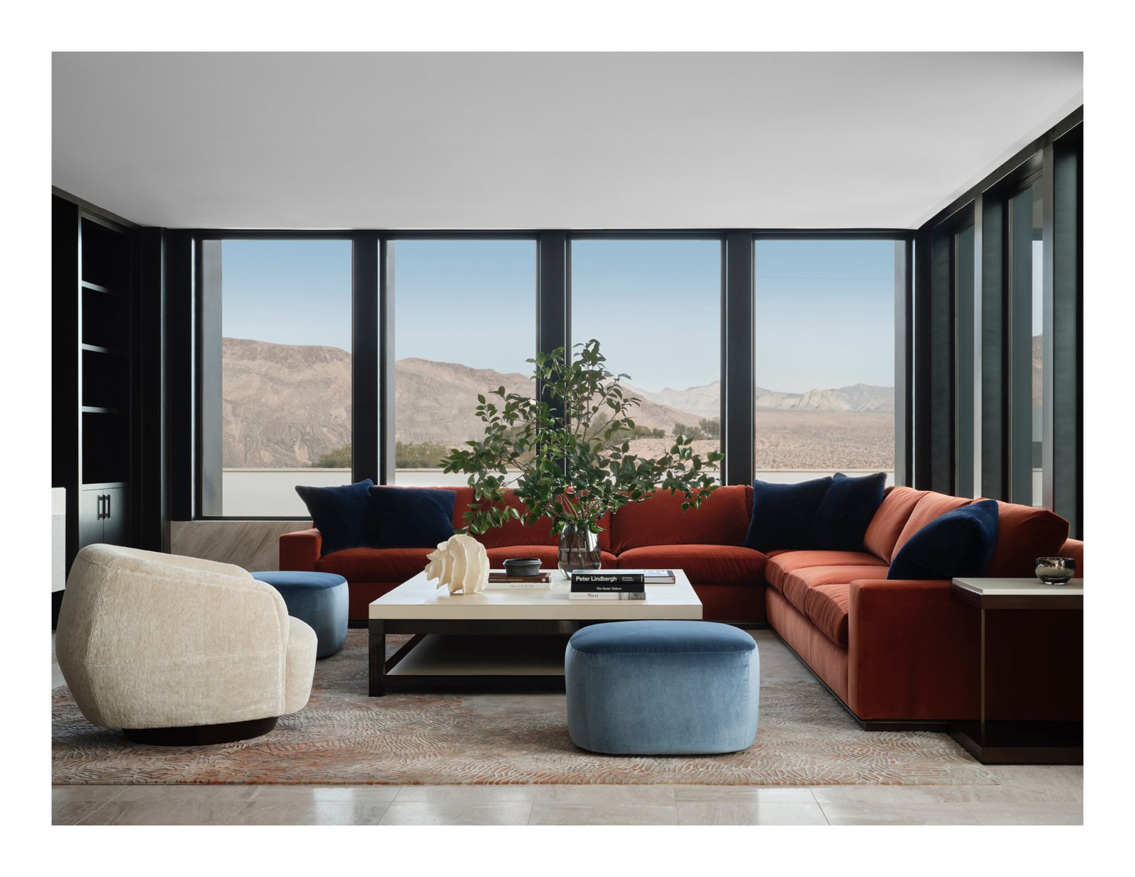Designed from a cinematic approach, various themes unfold in the house, beginning with a concept borrowed from the owners’ collection of “Hudson River School” paintings. Drawing inspiration not only from the expansive landscape vistas the mid-19th-century American art movement was known for, but also from the gilded frames that anchor and define the artwork within; the primary design concept of “portals” that layer and frame rooms emerged. Thus, creating a curated experience that serves as a framed backdrop to life’s daily activities as they unfold.