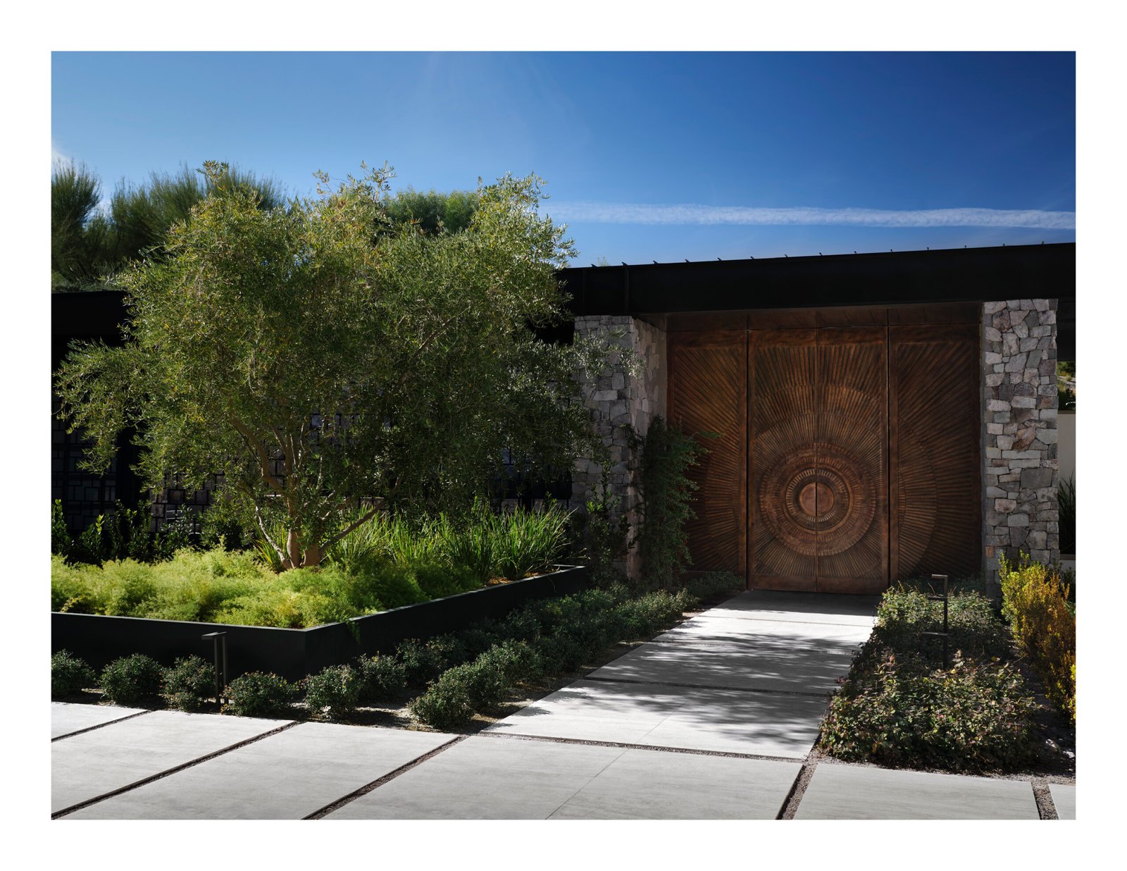 Zoned Efficiency: The residence is designed with separate public and private zones, conditioned independently, to reduce energy consumption when entertaining and guest accommodations are unused. A rooftop solar array and a VAV system with thermostats, smart controls, and lighting sensors in every room further reduce energy usage.
