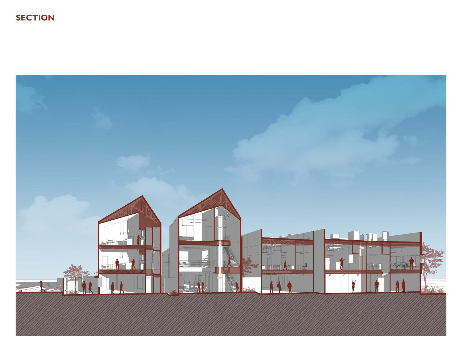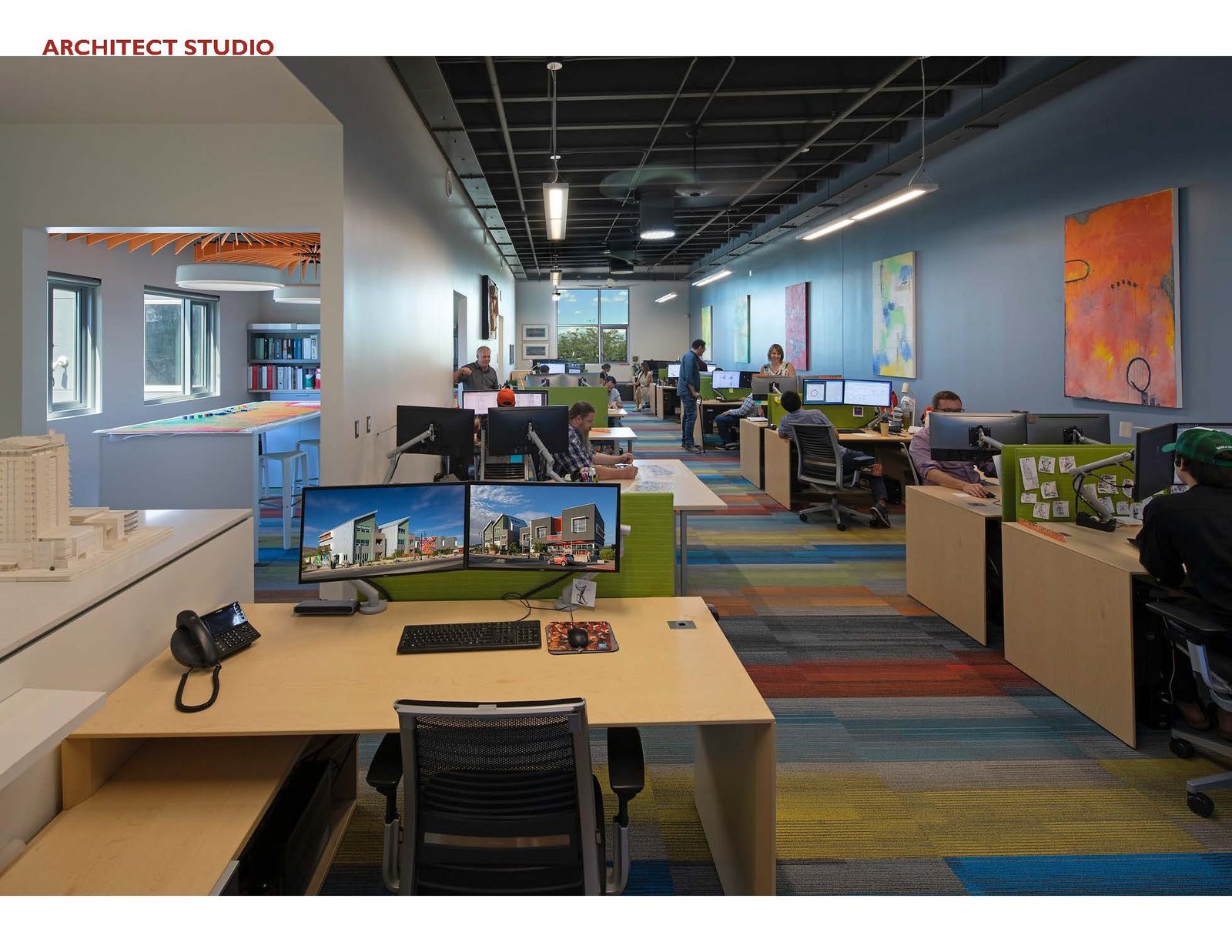 The buildings utilize a staged cooling strategy that incorporates operable windows throughout allowing for weather permitted passing ventilation. Ceiling fans provide additional fresh air displacement and contain temperature sensors, automatically activating when the space reaches a set temperature. The HVAC systems are programmed to respond when the former two stages can no longer maintain occupant comfort. The office spaces use motion detectors to automatically turn the lights off when not in use reducing energy consumption.